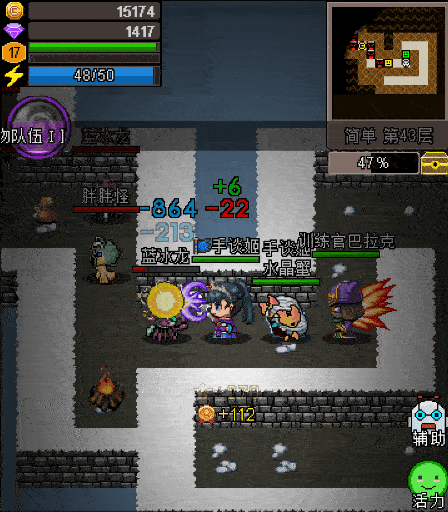 遊戲的迷宮是隨機生成的,達到一定的層數,還會有boss出現。雖然有數十種迷宮地圖風格、上百種怪物,但推圖比較單一——衝上去放技能。