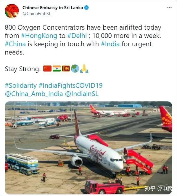 自印度被第二波新冠疫情襲擊以來,中國就不計前嫌地向印度密集公開表態願意提供援助,駐印大使孫衞東更是公佈了一組數據:自4月以來中國已向印度提供了超過5000台呼吸機、21569台製氧機、超過2148萬個口罩及大約3800噸藥品。另外,中企正加緊生產4萬台製氧機,爭取儘快交付印方。