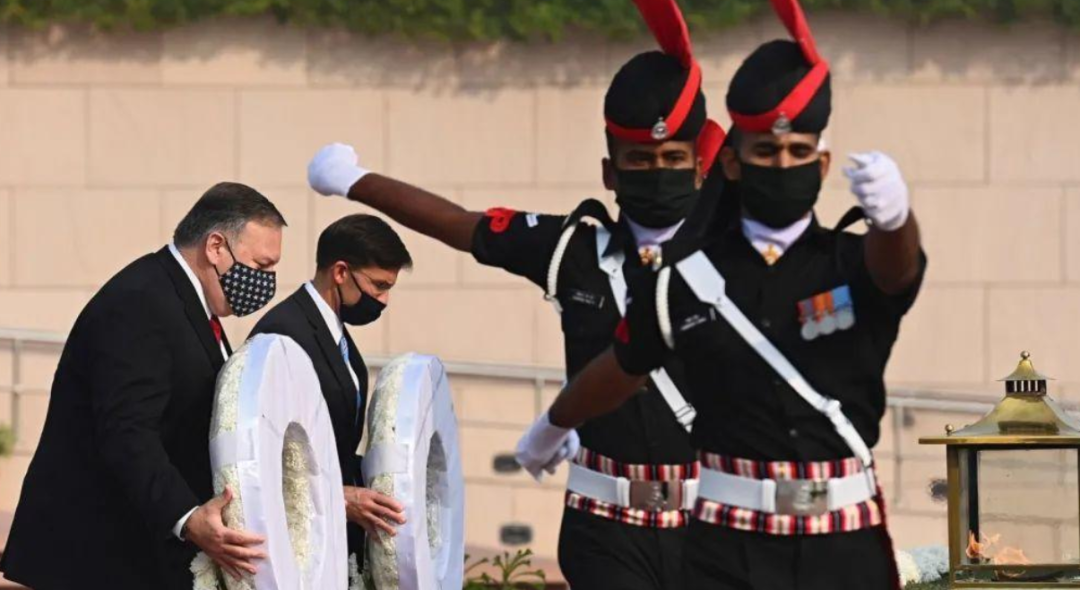 當時的美國國務卿和國防部長還向印度陣亡士兵敬獻花圈,死者就是加勒萬河谷衝突中死亡的印度士兵。