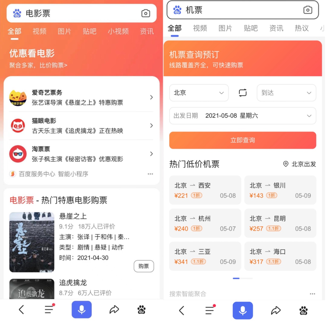 不過,不論是看電影、還是打車、出遊、購物,用户都會提前“搜”一下做做攻略,同時也會在瀏覽信息時自然地產生“隨時隨時地的需求”,離搜索最近的百度則自然地承接了用户的信息需求及順延的服務需求。
