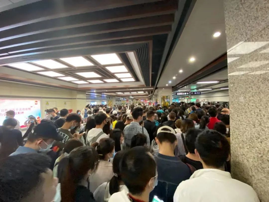 分開時頗為不捨。之後,我們經歷了傾盆大雨,被困在回民街/鐘樓,最後輾轉了近一個多小時才上了地鐵。地鐵情況是這樣的:我拍了幾張圖給大家看。