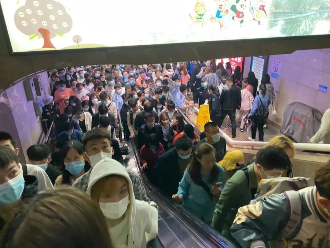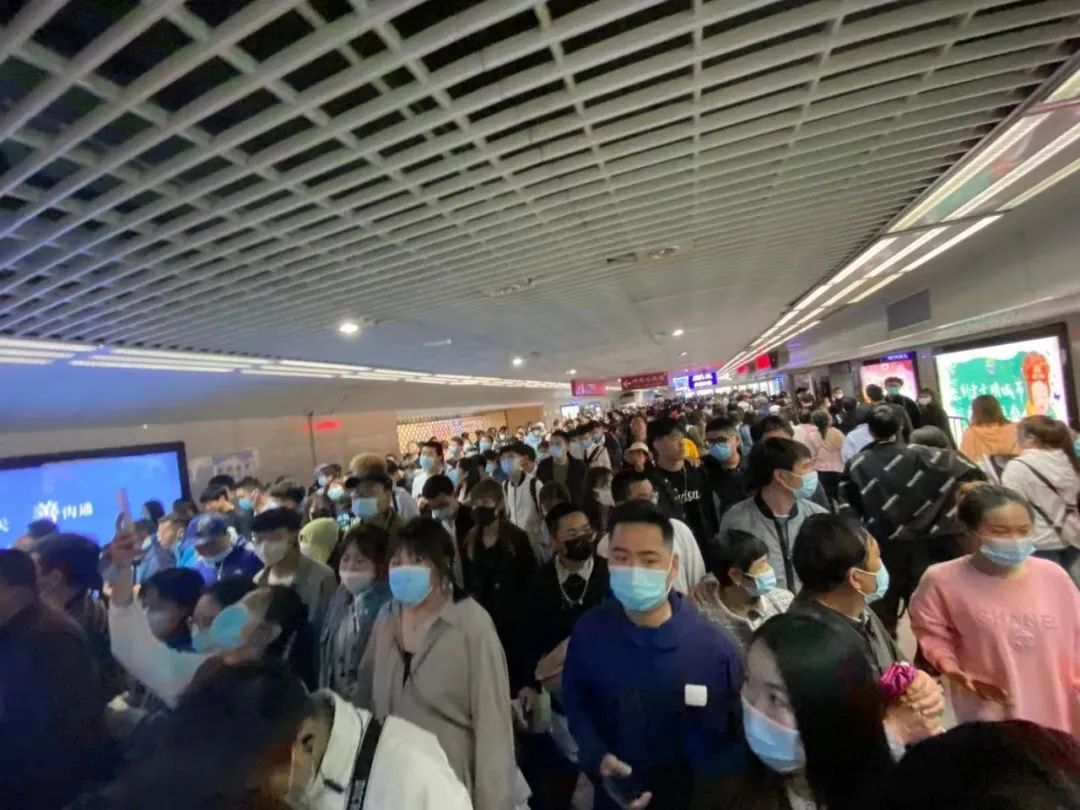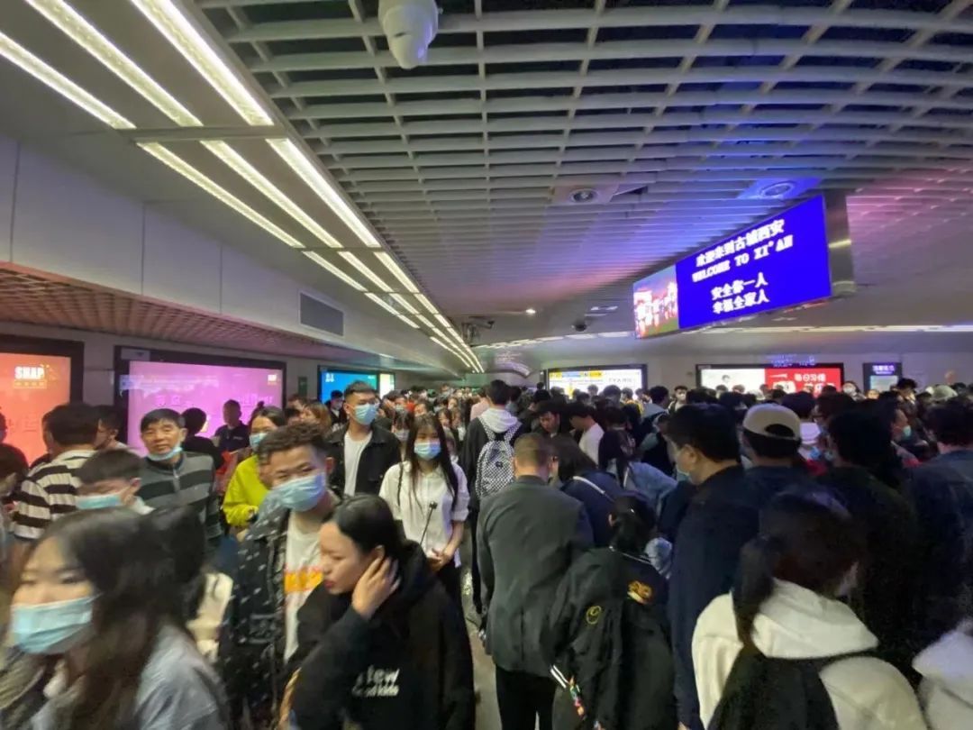 ——5月1日我們傍晚我們在大唐芙蓉園區,晚上離開時遭遇巨大人流,出租車網約車都叫不到,就坐地鐵。地鐵完全人滿為患,排隊都排到地鐵站外。後來發現去大唐不夜城的很多人都走到這裏上車,一個小小的地鐵站要支撐兩個大型景點。