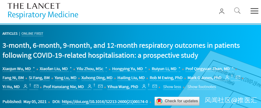 近日,《柳葉刀-呼吸醫學》最新發表華中科技大學同濟醫學院附屬武漢市中心醫院、武漢大學人民醫院與英國南安普敦大學(University of Southampton)學者合作研究,研究追蹤武漢住院重症新冠患者在隨後一年裏的康復過程,表明儘管大多出院患者可以恢復健康,但有三分之一患者在一年後肺部仍有影響。
