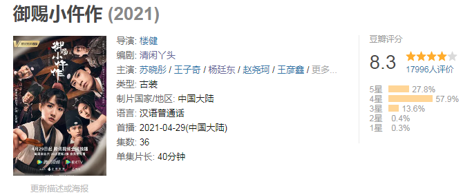 開播的時候平平無奇,結果越播越火,豆瓣都已經悄咪咪升到了8.3分,也算是近期國產劇裏的一股清流了。