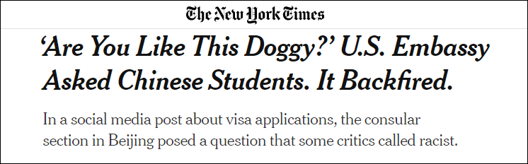 《紐約時報》:“你是不是像這隻狗狗一樣?”美國大使館問中國學生,結果適得其反