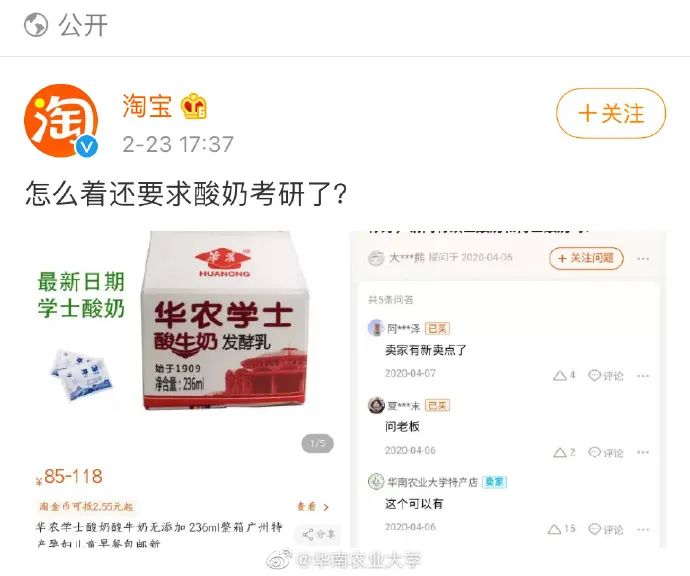 更有坊間傳言,最新一批的華農**“學士酸奶”已經被研究生身份“加持”**。