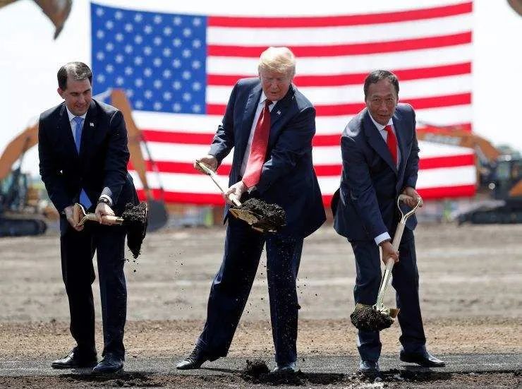 2018年應懂王邀請,郭台銘宣稱要去美國建分廠。