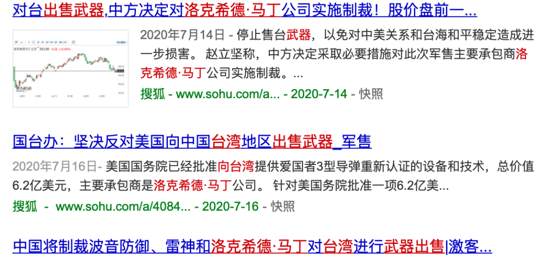 比如,2020年洛克希德·馬丁無視我們的反對,執意向中國台灣出售武器,遭到了我方的制裁。