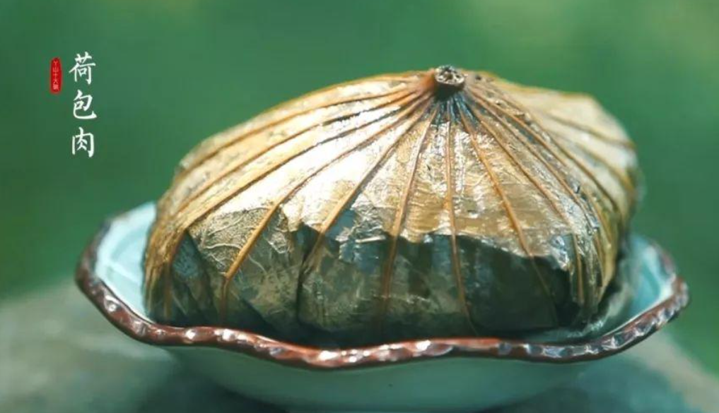 江西上猶的學生,應該會吃到荷包肉。這道菜是由荷葉包裹豬肉做成。在上猶,這道菜就叫“狀元菜”。因為菜的外型,像古代的狀元帽。