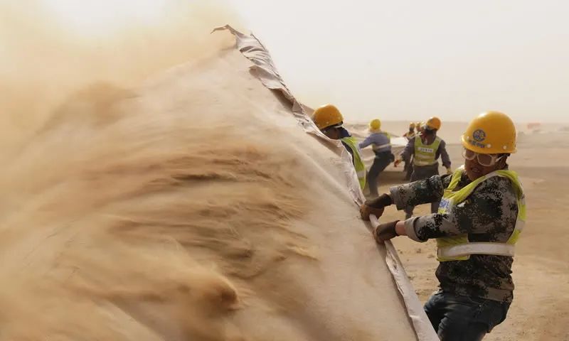 應對風沙,採取了放置沙袋來固沙,就地取材,效果顯著;