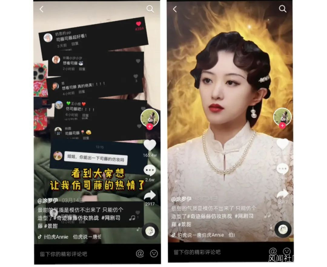 部分美妝博主也能跨界接影視劇的商單。比如,以服化道出圈的S級劇集《司藤》,找了600多萬粉絲的博主“塗羅伊”合作仿妝視頻。圓圓透露,塗羅伊接一條商單的價格是“六位數往上走”。