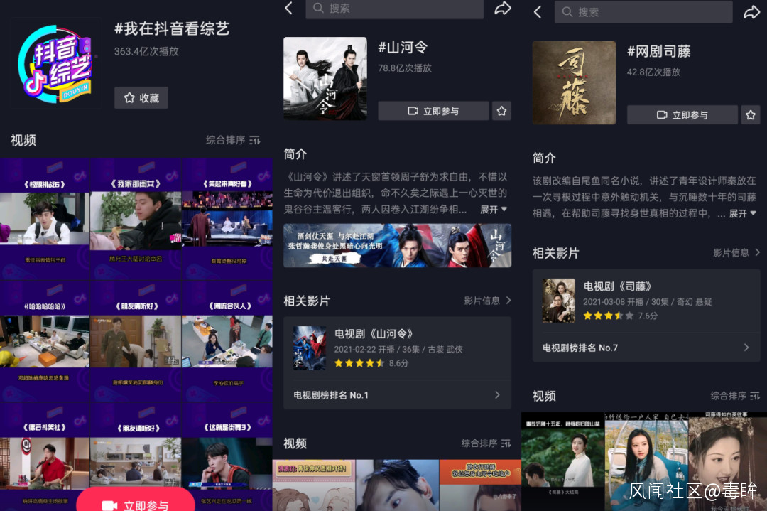 去年,B站在網站和App中上線了綜藝《創造營2020》二次投稿創作專題頁,還發起了《三千鴉殺》等影視劇二次創作活動;今年,劇集《司藤》在劇播期間,和微博聯合發起二創大賽。