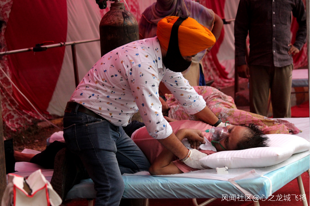 印度哈里亞納邦,新冠患者在當地一家“氧氣中心”中吸氧(資料圖)