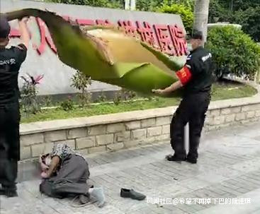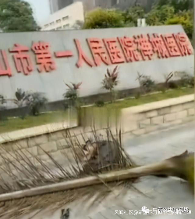 廣東一男子在醫院門口被幾十斤大王椰樹樹葉砸暈_風聞