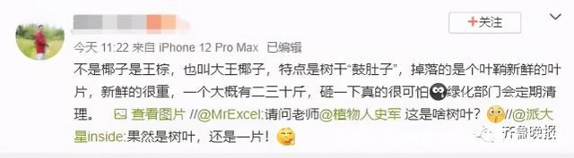 事發後,有人對“肇事”樹葉稱重,發現吸收雨水後的大王椰子樹葉,重量達到了31公斤落葉的殺傷力極大。