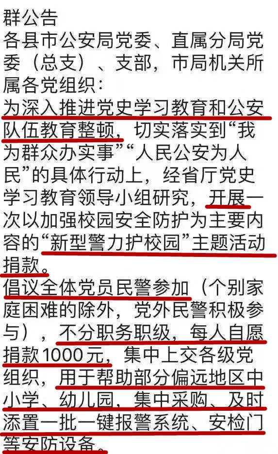 “倡議”全體民警捐1千,還要扯上“教育整頓”?_風聞