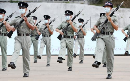 不過最近的香港警察學院開放日中,魔幻的一幕來了,香港警察不但走上了中式步操,就連儀仗用槍都換成了中國版AK47——56衝。