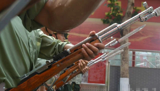 ▲56式禮賓槍,準星和刺刀柄都是黑色的