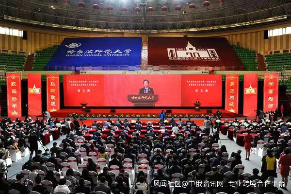 中俄資訊網訊(記者 高寶玲 郝儷娜):70載薪火相傳,生生不息;70載桃李芬芳,英才輩出。韶光流轉,盛世如約。5月8日上午,哈爾濱師範大學建校70週年紀念大會在學校體育館隆重舉行。中共黑龍江省委常委、宣傳部部長、黑龍江省委教育工作領導小組副組長、哈爾濱師範大學1985級化學系校友賈玉梅,黑龍江省人民政府副省長楊博,黑龍江省原副省長、全國人大教科文衞委員會原副主任委員、民進中央原副主席、哈爾濱師範大學原校長王佐書,黑龍江省人大常委會原副主任、農工民主黨中央原副主席、哈爾濱師範大學原校長陳述濤,中國工程院院士、哈爾濱工業大學校長周玉,中國工程院院士、哈爾濱醫科大學校長張學,黑龍江省司法廳廳長、1981級中文系校友趙金成,黑龍江省科技廳廳長、1984級物理系校友張長斌,共青團黑龍江省委書記、1996級政教系校友苑芳江,黑龍江省教育廳副廳長、1984級教育系校友姜同河,黑龍江省委宣傳部一級巡視員、1979級政教系校友劉光慧等省市有關部門領導、兄弟院校領導、關心和支持哈爾濱師範大學發展建設的社會各界人士、離退休老同志和校友代表蒞臨大會現場。哈爾濱師範大學領導班子成員、正處級領導幹部、師生代表參加會議。哈爾濱師範大學黨委書記辛寶忠主持大會。