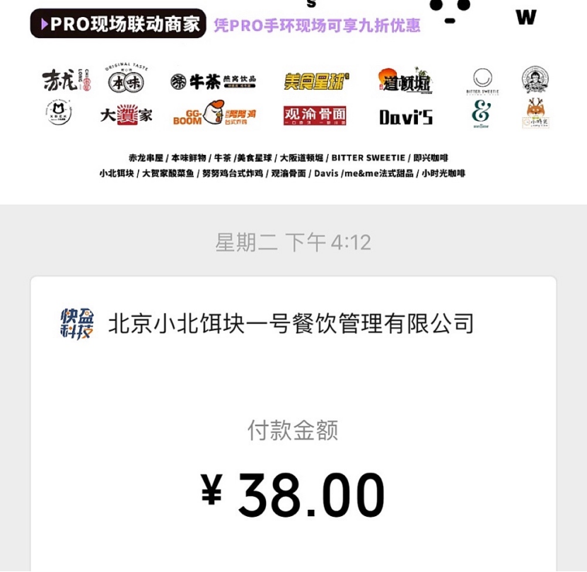 到了現場,排隊購買美食。手持PRO票(單日票價720/張)的阿元,去了官方消息上説的合作商家,在詢問是不是9折優惠時,“道頓堀”、“小北餌塊”等商家工作人員紛紛表示:不是我們家,我們沒有合作。即便她再次拿出了大麥PRO票務説明,商家也不認,最終她以原價38元買了一碗米線。她告訴娛sir:多少還是有些不爽,雖然只是幾塊錢的事,但就是覺得被欺騙了。
