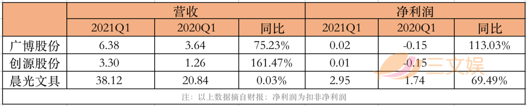 這一點,從已公佈一季度財務數據的廣博股份、創源股份、晨光文具就能看到。