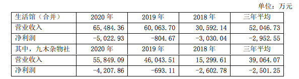 2020這一年,九木雜物社的營業收入從2019年的4.6億元增長到了5.58億元;淨虧損4207.86萬元,2019年是693.11萬。