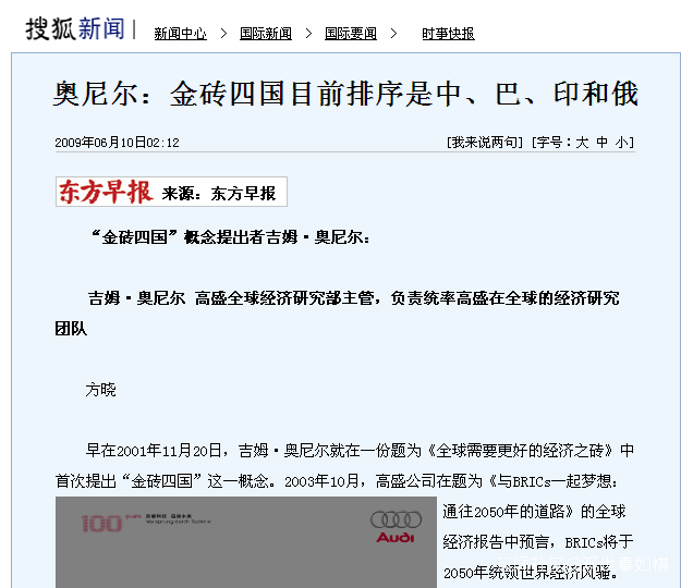 奧尼爾:金磚四國目前排序是中、巴、印和俄-搜狐新聞