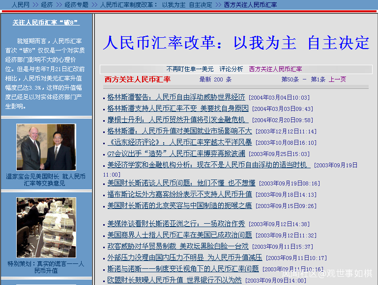 我們再來看一個歷史事實。下面這是人民網關於本世紀初,人民幣匯率改革的專題。