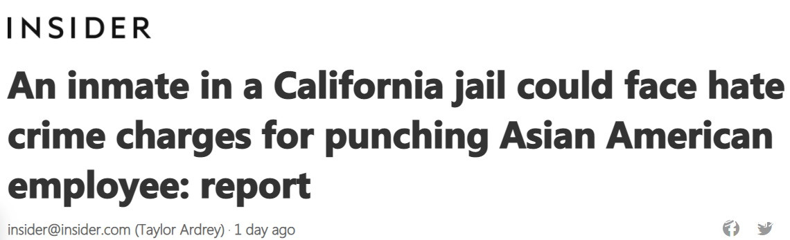 據美聯社報道,在錄像中看到一名在獄中的囚犯襲擊了一名54歲的亞裔工作人員,他可能會被控犯有仇恨犯罪。