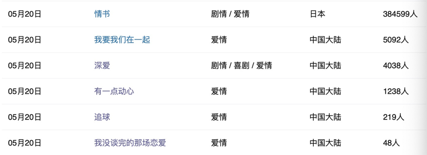 **愛情片除了做好下沉營銷,檔期的選擇也是重中之重,一定要給觀眾一個走進電影院看愛情片的儀式感和理由。**甚至我們可以這樣認為,如果市場上很長一段時間沒有愛情片,那誰先上誰就贏了。要知道,愛情片是市場剛需,約會看電影仍然是很多情侶約會的必備環節。
