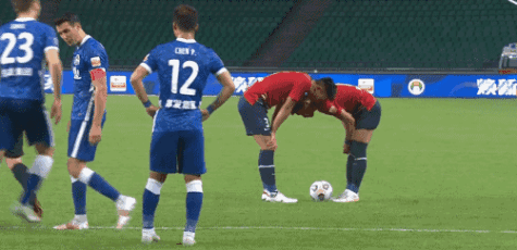 河南隊外援舒尼奇對主裁判判罰距離表示不滿,擅自上前丈量任意球距離,被主裁判出示第二張黃牌,兩黃變一紅被罰下場。