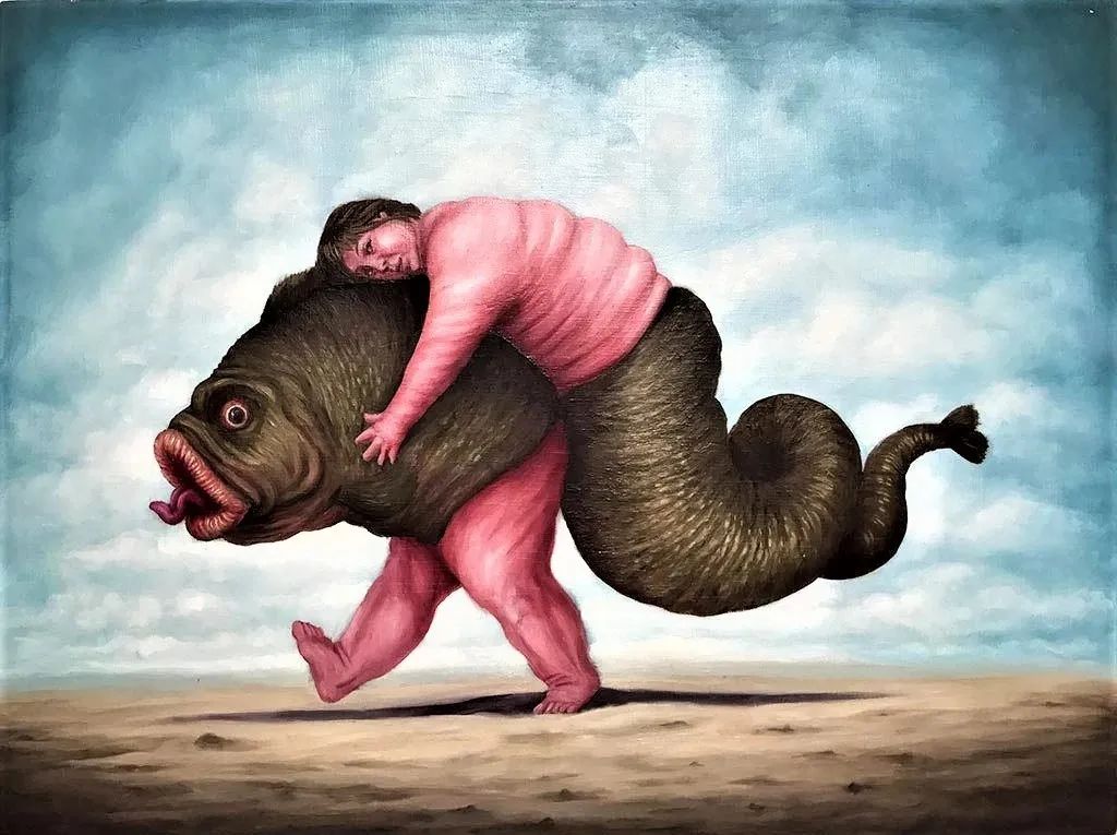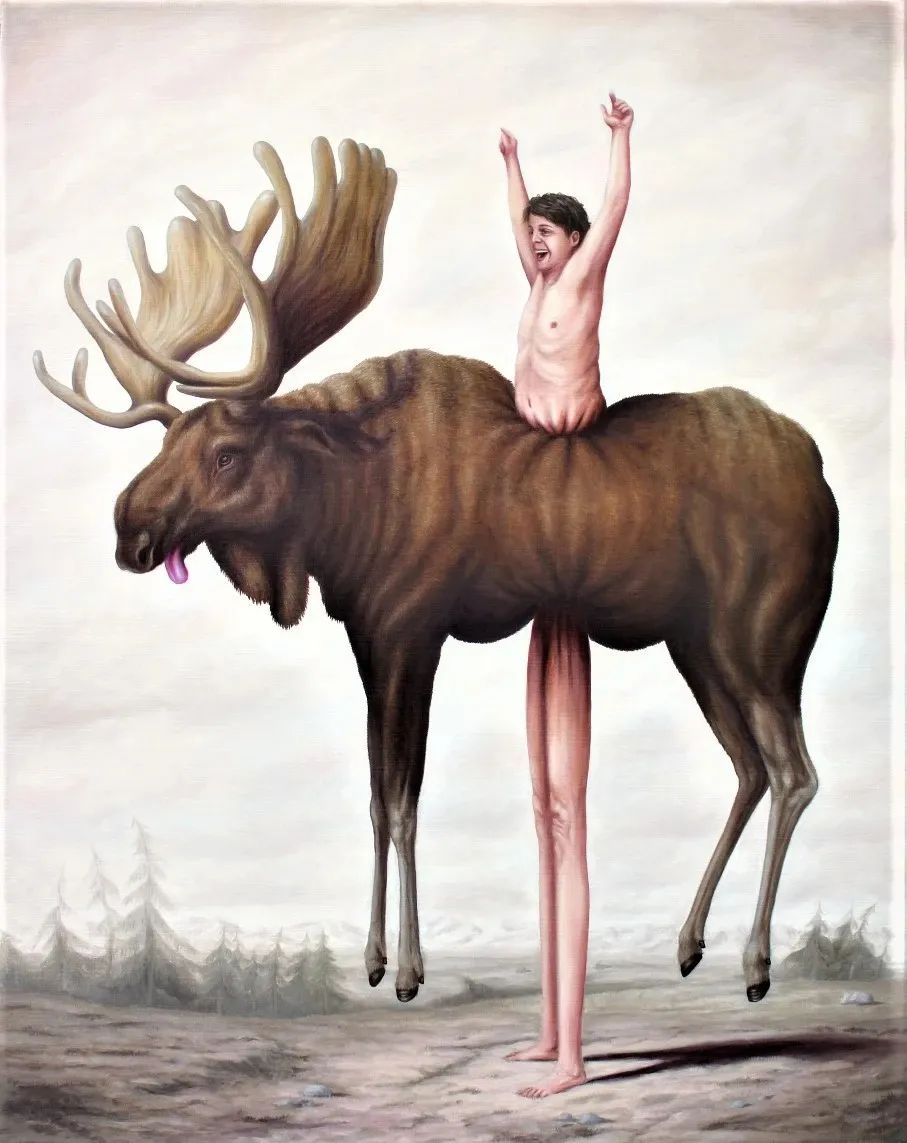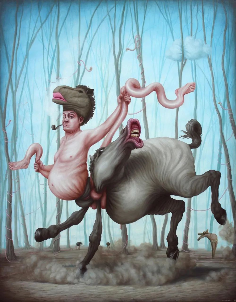 在他的畫中,不僅有動物界對人類的模仿,還有人體與動物體位交接、移植的想象。