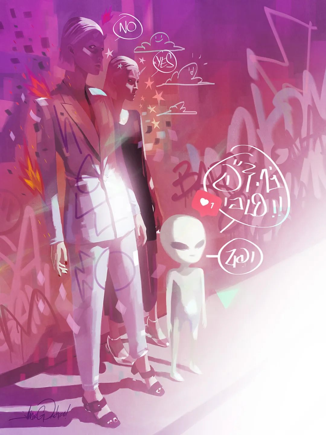 背後流露着Pawel對當今人們日常溝通交流、宗教信仰、生活作息以及身體健康等各類問題的擔憂。