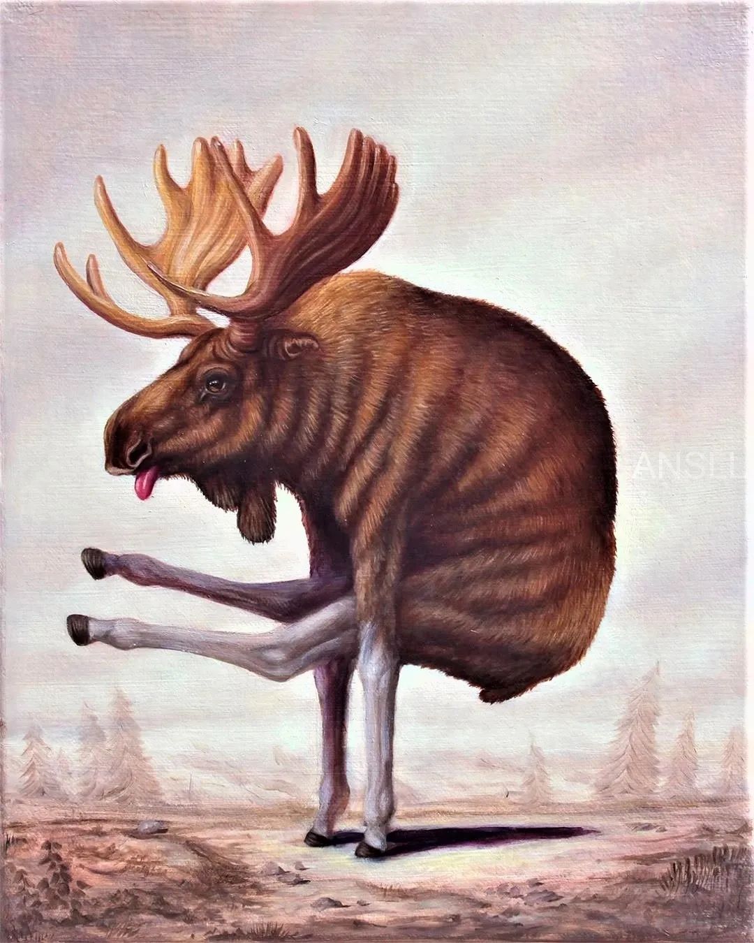 來自巴黎的布魯諾常常在畫中以誇張的變形,對野生動物進行人體瑜伽各種姿勢的想象。