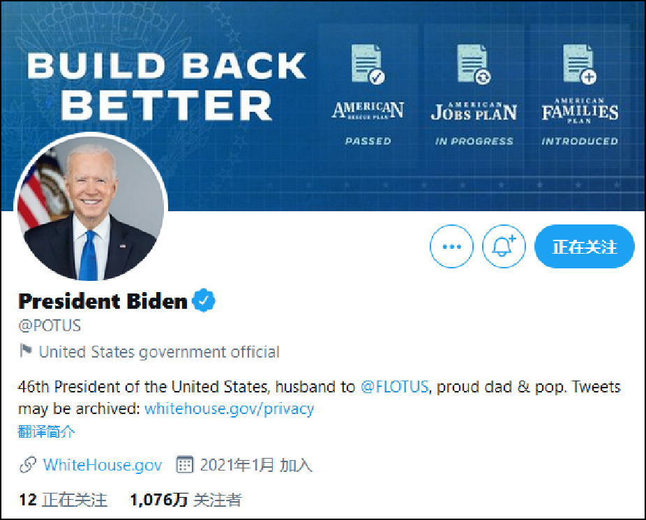 即使是美國總統拜登的推特賬號中,也使用了“husband”一詞來描述自己。