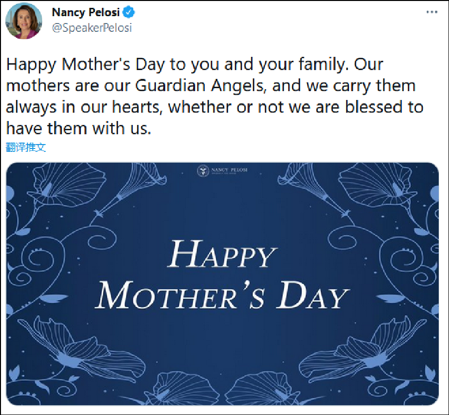 正當兩方觀點在社交媒體上吵得不可開交時,5月9日到了,而無論是白宮官方還是民主黨籍的眾議院議長南希·佩洛西(Nancy Pelosi)使用的都是“母親節快樂”(Mother’s Day)的措辭。