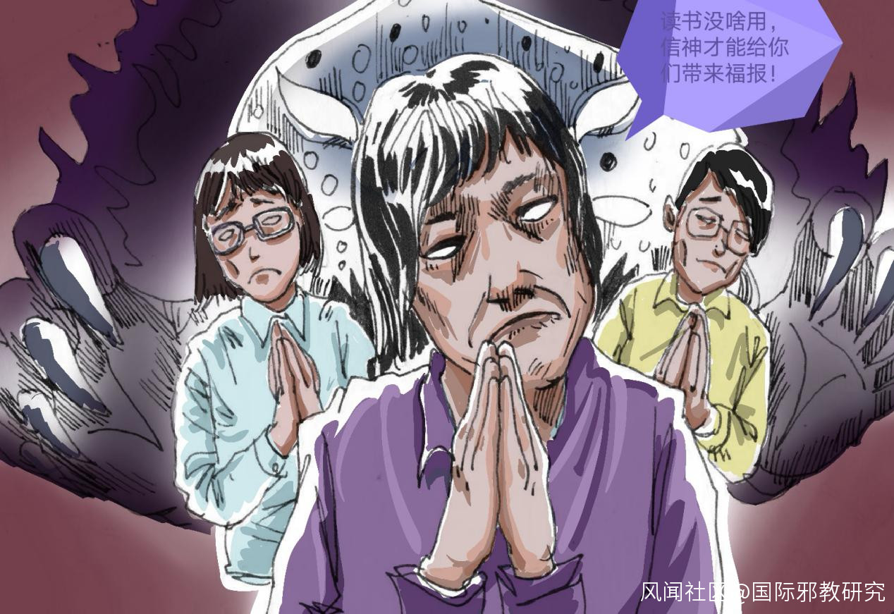 8、不甘心就此作罷的何鳳如,開始誘騙兩個女兒跟她一起信“神”,甚至編造女兒生病的謊言欺騙老師,帶着女兒逃課去參加全能神邪教聚會活動。漸漸地,在母親的影響下,兩個原本勤奮好學的女兒,認為“讀書沒用,信神將來才能過上好日子”,變得再也無心向學,成績一落千丈,性格也變得孤僻冷漠、狂妄自大,不再與同學交往。母女三人成了村民眼中的’怪人”。