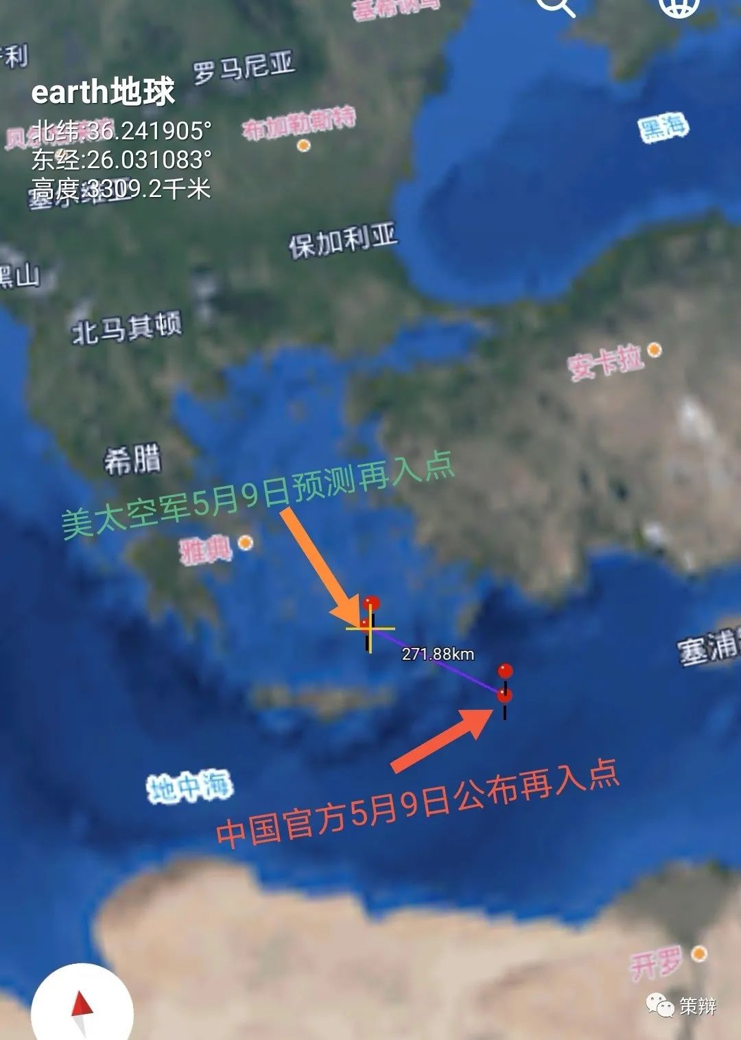時間上美軍預測似乎很準,10點11分比10點12分只差了1分鐘。地點差距以太空高速物品來説,272公里也不算什麼。可大家早注意的是,最後時刻美國它都在在耍小聰明,故意在地點上強調前綴地中海、克里島。