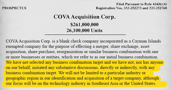 “我們沒有選定任何業務相關標的,也沒有與任何相關商業體進行直接或間接的實質性討論。儘管我們主要聚焦於東南亞和美國的科技行業,但也不會在行業與地理上限制我們收購、評估的目標。”