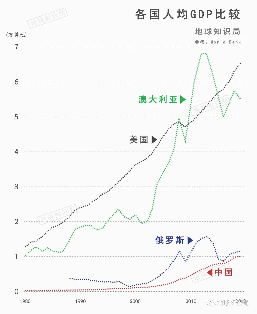 澳大利亞雖然疆域遼闊,但是人口稀少,且分佈不均。相對於發展迅速,人口基數巨大的眾多亞洲鄰國,澳大利亞在多方面的優勢註定無法持續。澳大利亞在上世紀90年代時,也曾在自我定位上向亞洲國家傾斜,但當時亞洲國家發展相對落後,政治軍事實力尤其單薄,這次嘗試沒有帶來實際利益,反而一度模糊了澳大利亞的自我定位。
