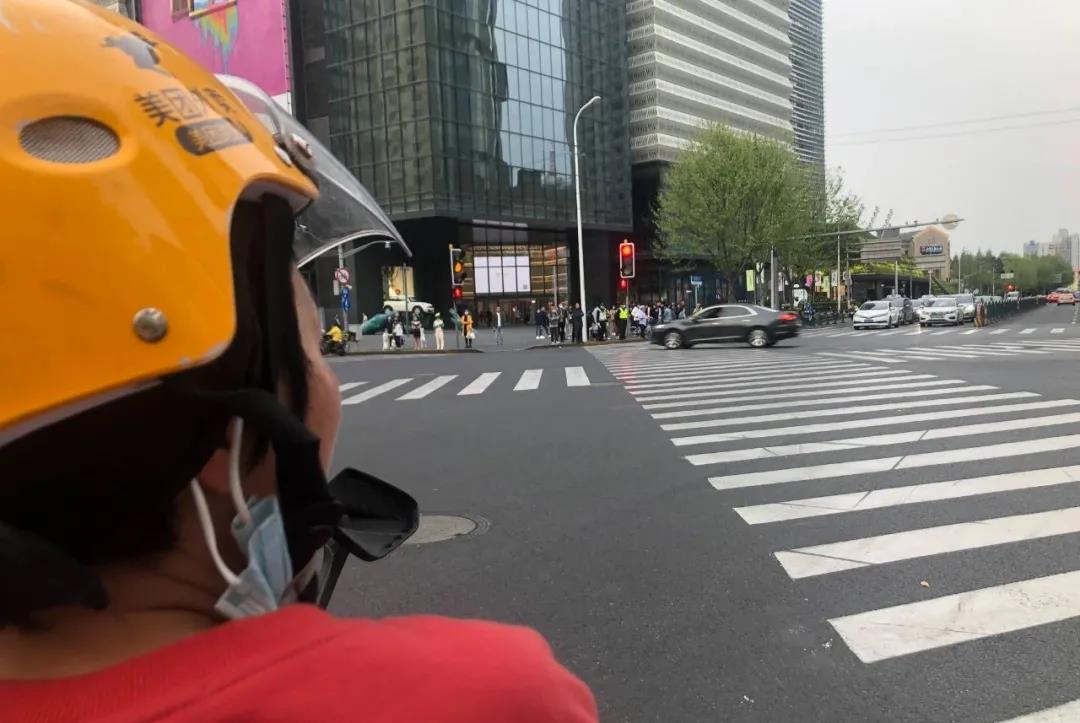 我提出跟她送一天外賣。為了在中途搭上車,我在商場門口等她送完之前的單子,才坐上她的後座。那是我坐過最驚險的電瓶車,考慮到後座有個人,阿瀟還“放慢了速度”。做騎手後,迄今為止,她已換了三輛電瓶車。這一輛的後視鏡也已經撞壞了,但她並不介意。她説,沒有一個騎手是看紅綠燈的,往往在燈還沒有跳轉時,他們就發動了。有一次,阿瀟停在十字路口,信號燈已轉紅,另一個騎手看她着急,打趣式地伸出雙腿橫在路中間,説:你快走,我幫你攔着。