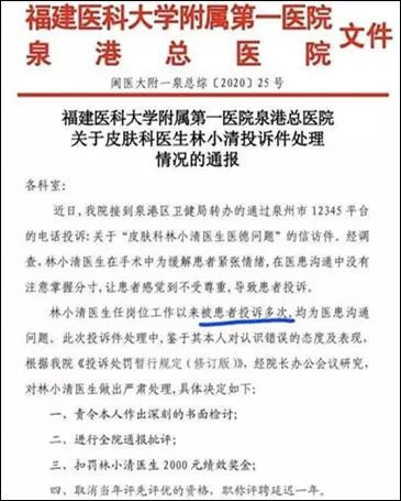 網上流傳一份他之前被醫院處分的文件,文件中儘管言辭隱晦,但“讓患者感受到不受尊重”、“被患者投訴多次”的字眼仍然異常醒目。