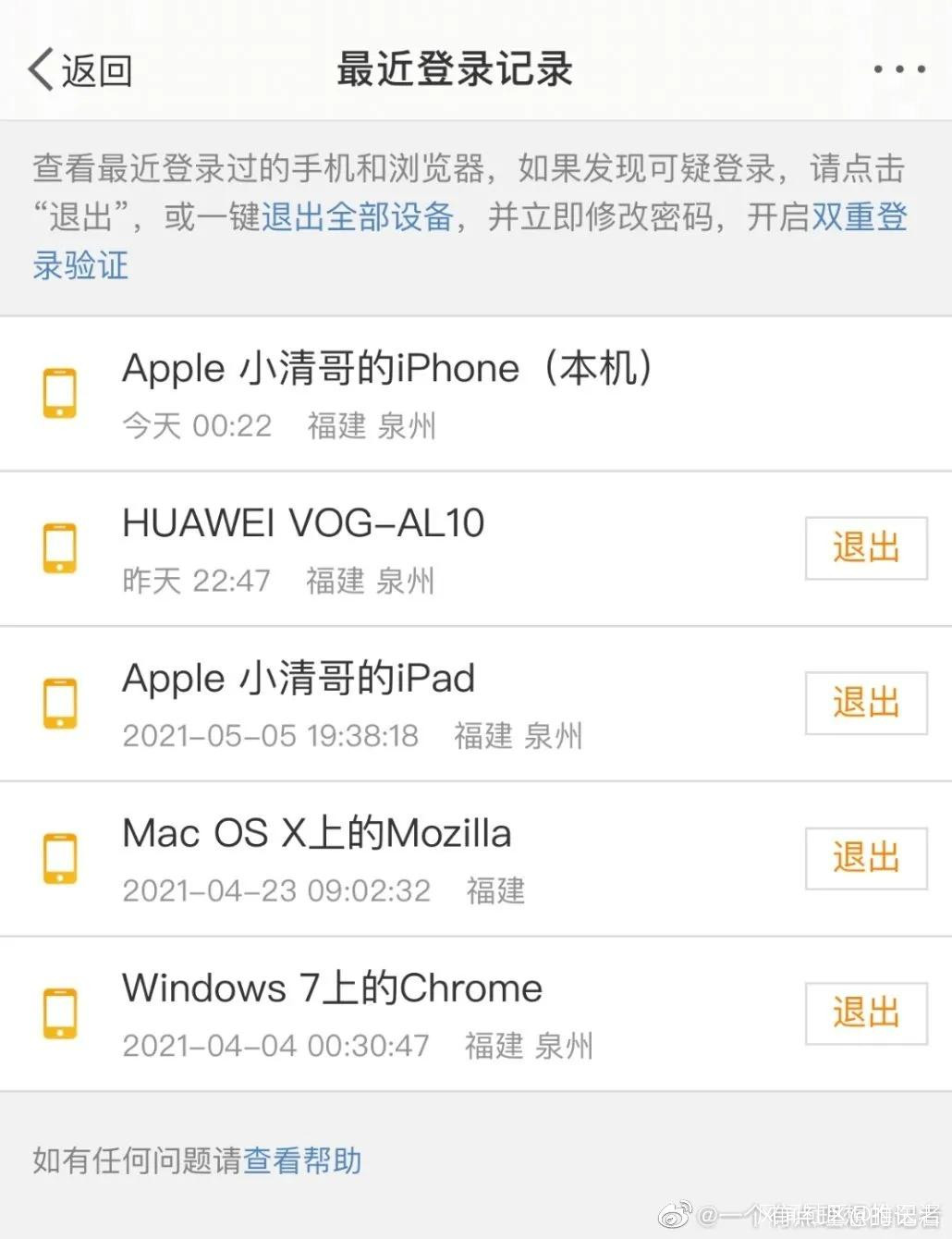 據@一個有點理想的記者 在微博上發佈了一張林小清本人手機查閲的微博登錄記錄,記錄顯示整個四月五月,其手機登錄微博地點均為福建,主要是福建泉州。另,過去相當長一段時期,其後台登錄信息也從無西安IP。