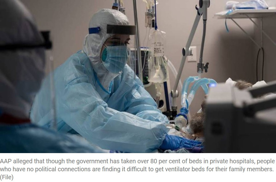 印度平民黨聲稱,儘管政府已在私人醫院中佔用了80%的牀位,但沒有政治聯繫的人發現很難為其家人獲得呼吸機牀。