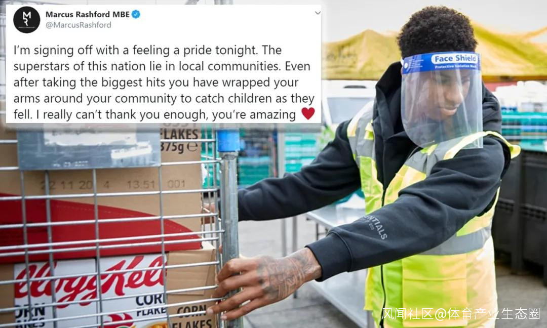 曼聯前鋒拉什福德就曾在社交媒體上為飢困兒童發聲,改善了數百萬兒童的生活,他在社交媒體上所展現出的率真與熱情極大地激勵了英國人民。