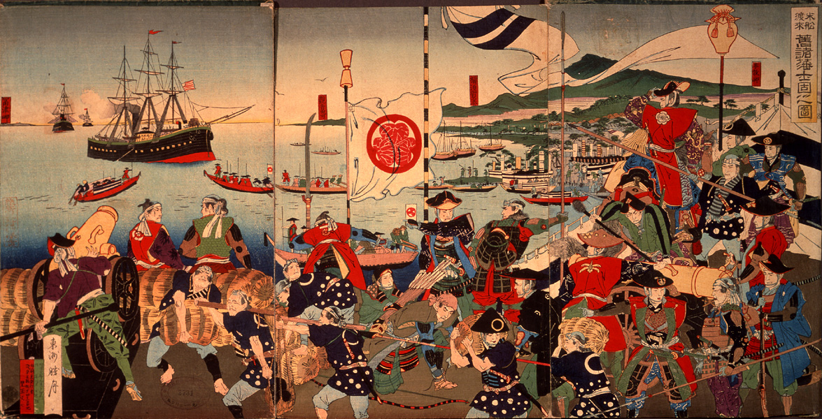 面對海上發着不祥轟鳴的蒸汽大船,日本武士在岸邊一字排開,沒一人知道在國家的外部發生了什麼,唯一確定的,是自己手中的刀劍敵不過“花旗洋鬼”的堅船利炮。