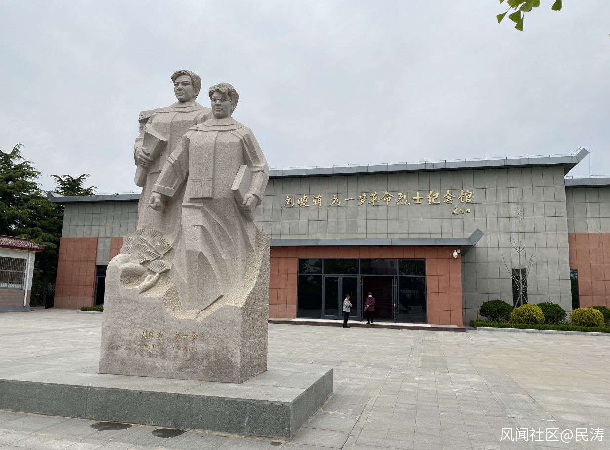 走出“劉曉浦、劉一夢革命烈士紀念館大門,天已陰沉,烏雲密佈,回頭再拍一張兩英雄的英姿照片留念。