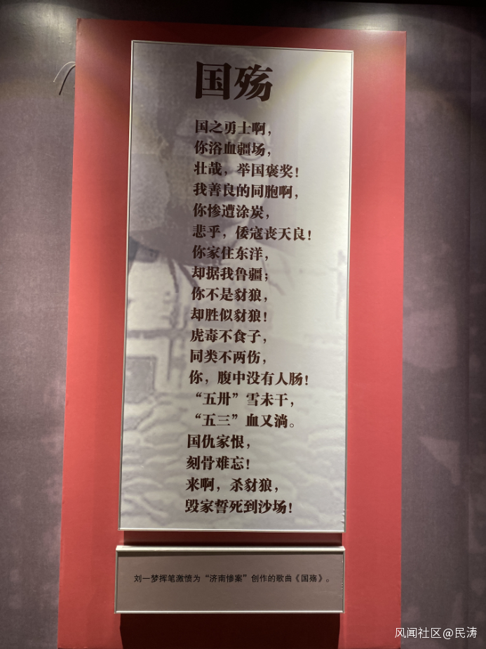 1928年5月3日,也就是93年前的今天,日本為阻止國民革命軍北伐,派兵侵入中央政府設在濟南的山東交涉署(外交機構),將交涉員蔡公時割去耳鼻,然後將包括交涉署其他職員全部槍殺。在濟南城內肆意焚掠屠殺,共焚殺山東民眾一萬七千餘人,史稱“濟南慘案”,今日濟南一定是警報聲聲,警示民眾,勿讓歷史重演!