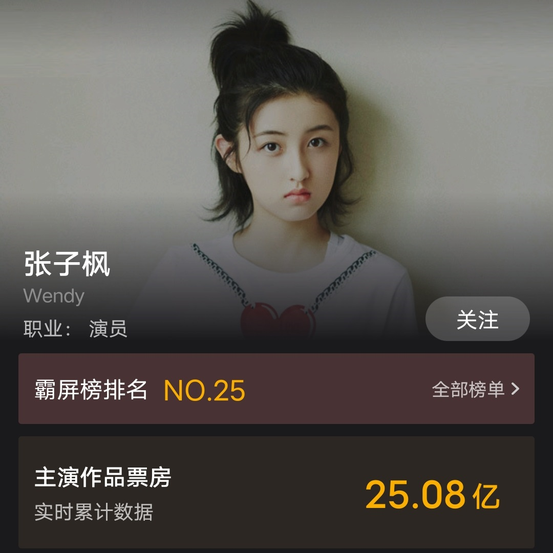 張子楓本身演技繼《唐人街探案》後再度得到肯定,在“00後”女演員中以電影主演作品累積票房超過25億的成績位列第二**,票房貢獻作品除《我的姐姐》之外,還有《快把我哥帶走》、《寵愛》等**,而第一名的“00後”女演員趙今麥則更多依靠一部46億票房的《流量地球》,獲得超過51億的電影主演作品累積票房,之後便轉戰電視劇領域,所以相比之下,今年陸續還有《秘密訪客》《盛夏未來》等電影作品的張子楓,身上所帶有的“電影”標籤更為清晰。