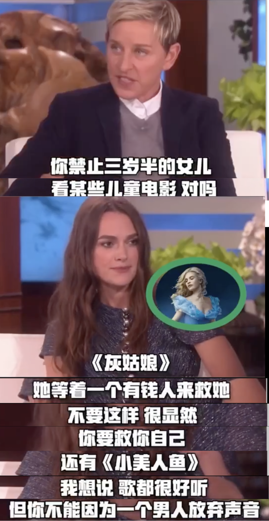 譬如《灰姑娘》,因為她等着一個有錢人來拯救她;譬如《小美人魚》,女孩永遠不要因為一個男人而放棄自己的聲音。